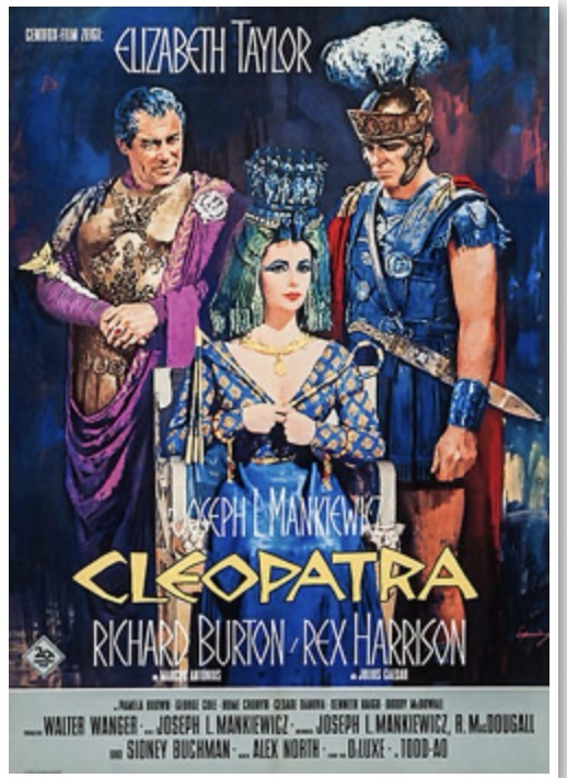 Elizabeth Taylor & Richard Burton hängen in meiner Kopfgalerie, Abteilung Geschichte, als Julius Caesar und Kleopatra. Mein geschichtliches Hundertstel-Wissen besteht bei Kleopatra aus: tolles Augenmakeup, schwarze Haare, unbequemer Kopfschmuck – danach kommt Ägypten, Pharaonin, jung gestorben.
